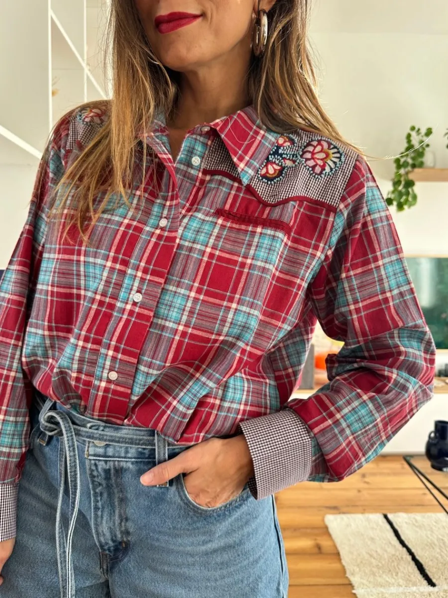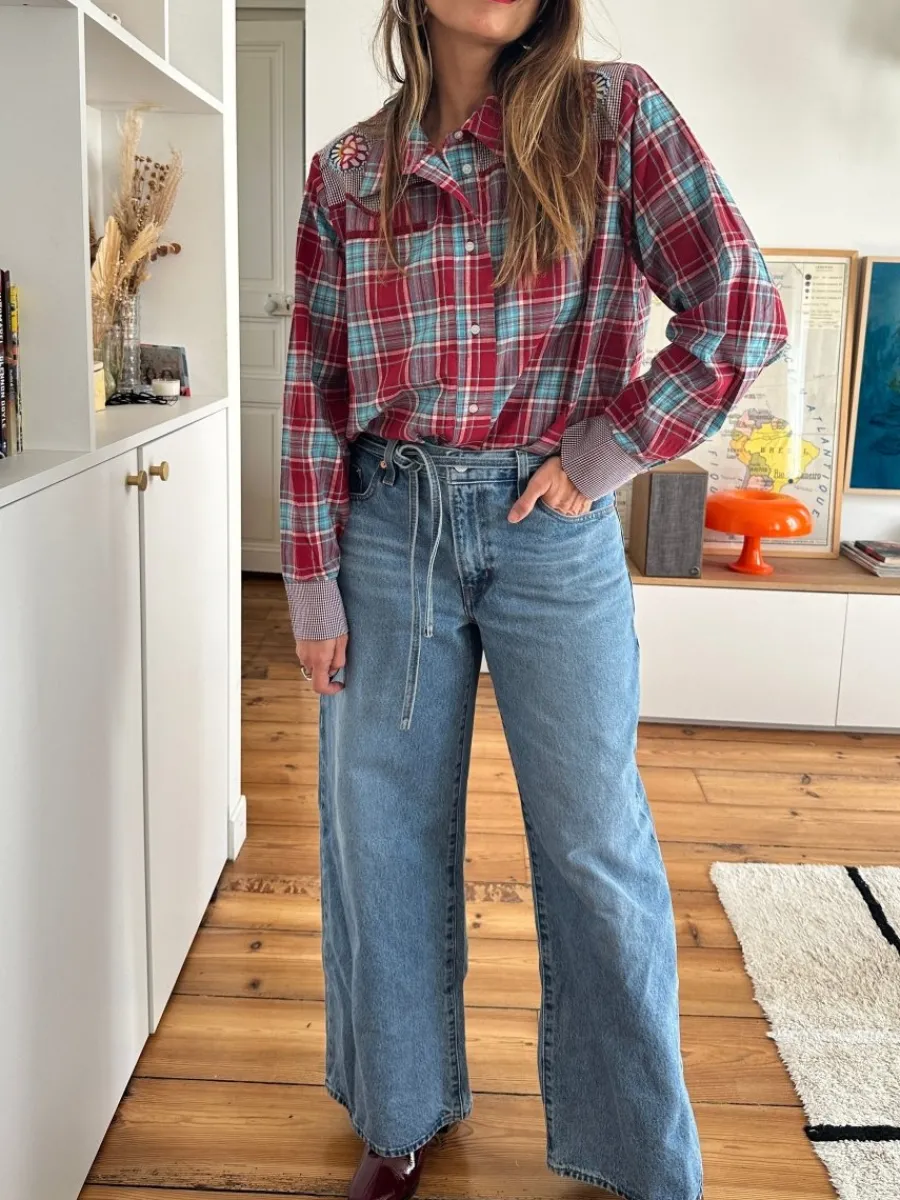 - Chemise à carreaux tartan bleu et rouge bordeaux