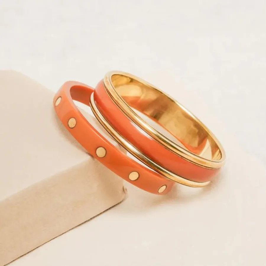 Set de 2 joncs fins en acétate et laiton doré.