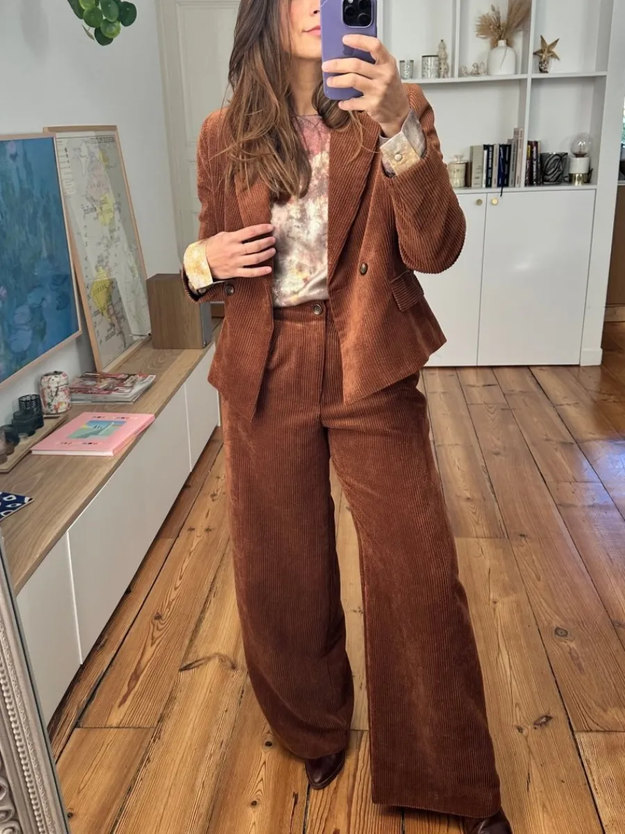 - Pantalon large en velours côtelé chocolat