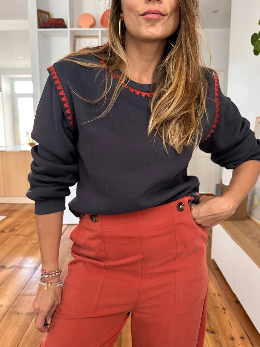 - Jeu de superposition au niveau des épaules avec broderies