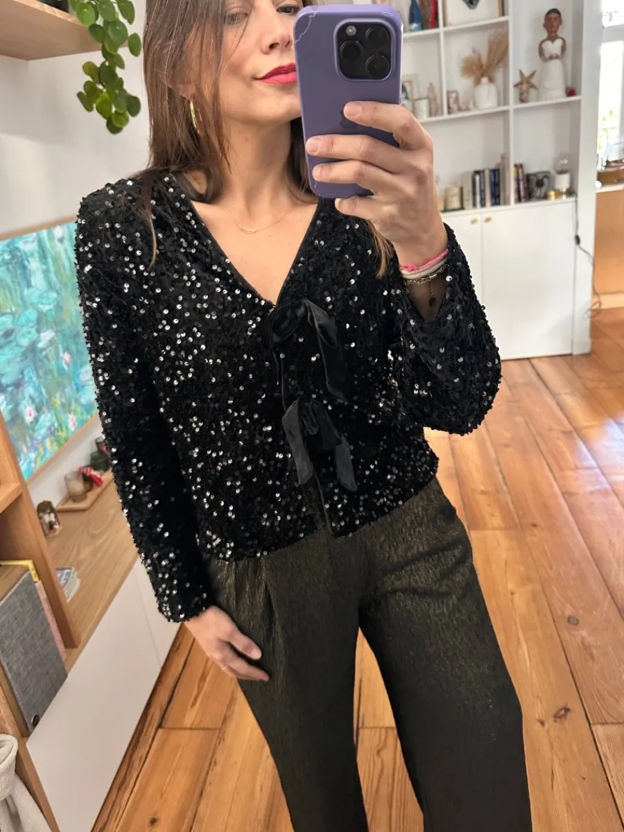 - Top à sequins à manches longues