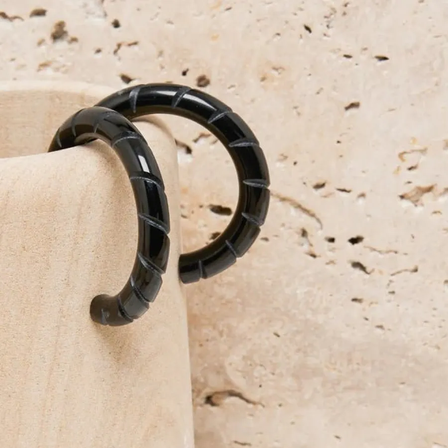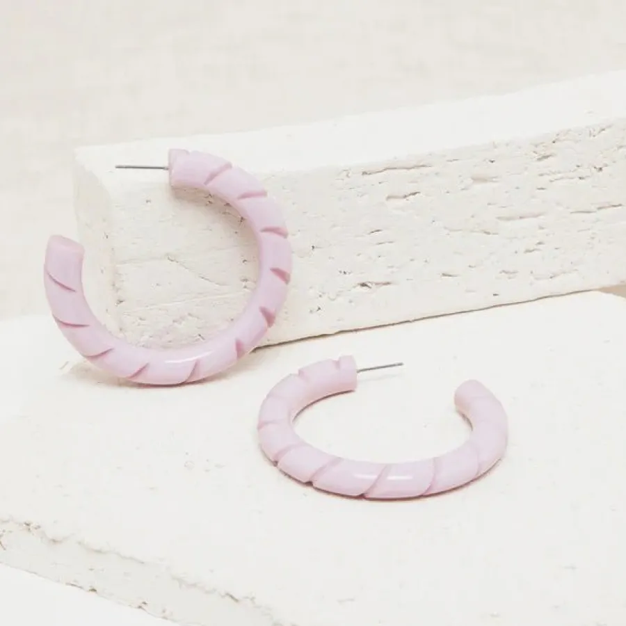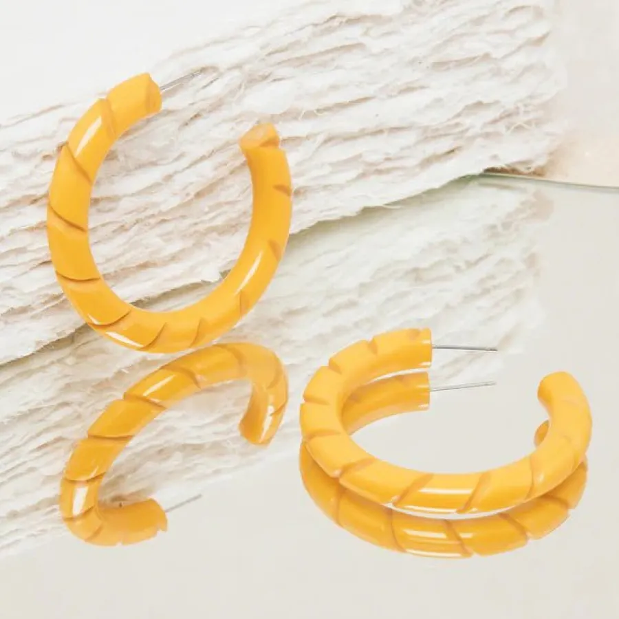 – Créoles ouvertes en acétate de couleur, détail vagues gravées