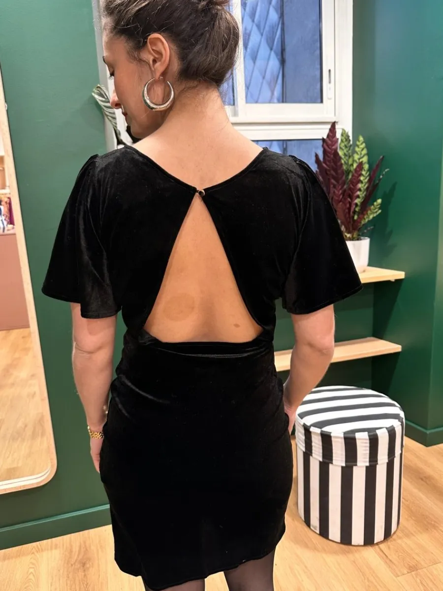 - Robe courte en velours ras noir