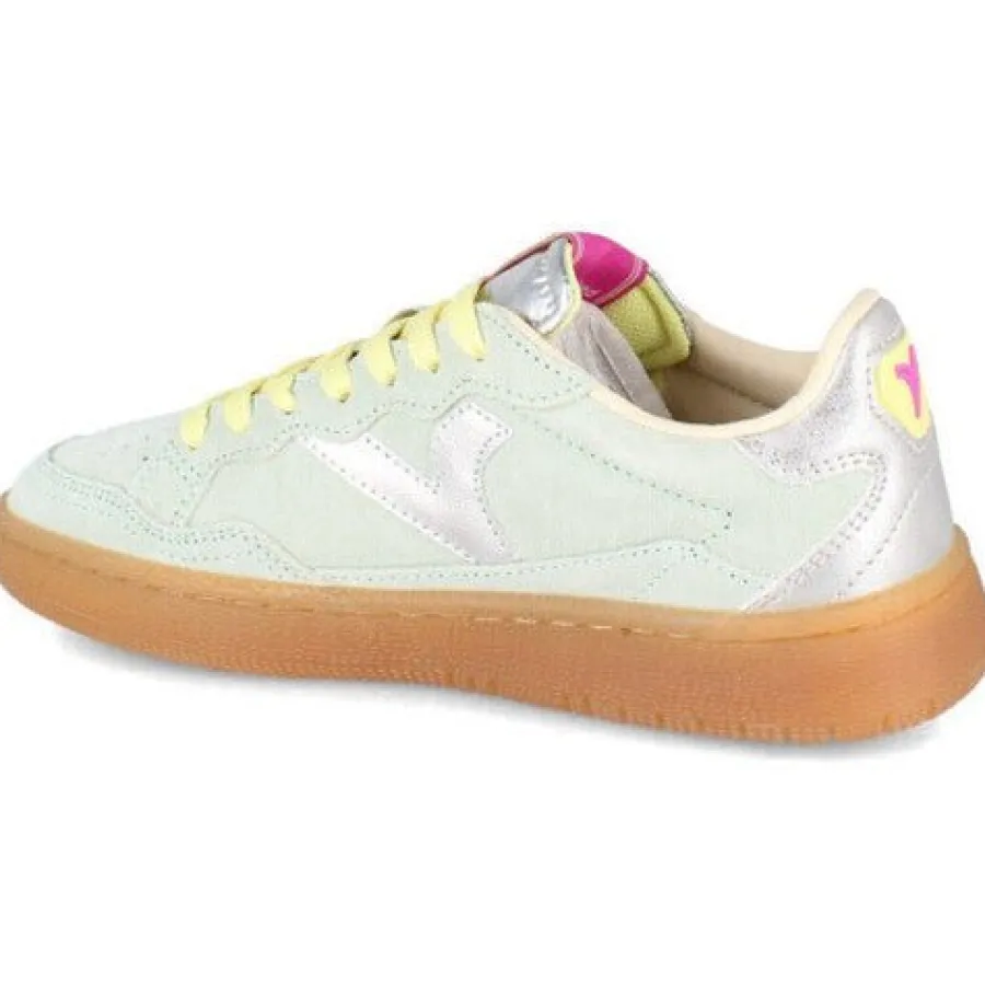 Découvrez ces baskets VICTORIA en cuir, revisitées avec une pointe de rose fuchsia et des détails irisés sur le talon ainsi que sur le V rétro emblématique. Leur coloris vert menthe apporte une touche de fraîcheur, tandis que leur semelle en caoutchouc assure confort et adhérence au quotidien. Fabriquées avec soin à partir de cuir, de textile et de matières synthétiques, ces sneakers allient style décontracté et élégance raffinée, pour vous accompagner avec classe dans toutes vos aventures.