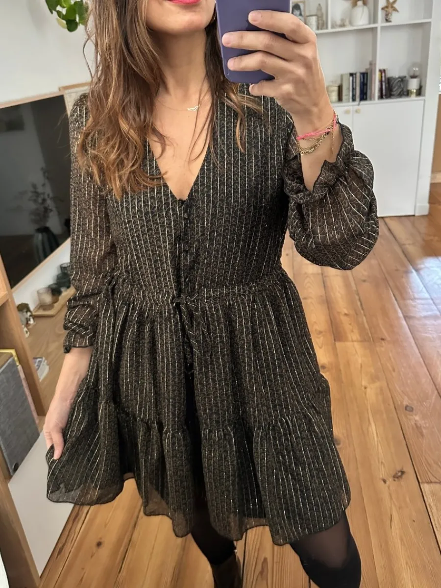 - Robe courte noire en mousseline
