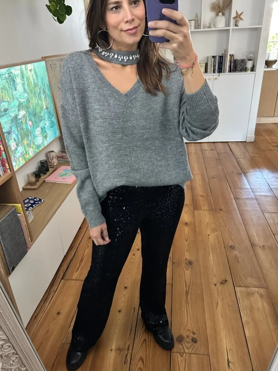 - Col V avec chocker orné de détails strass
