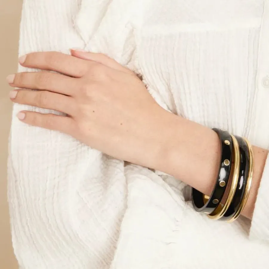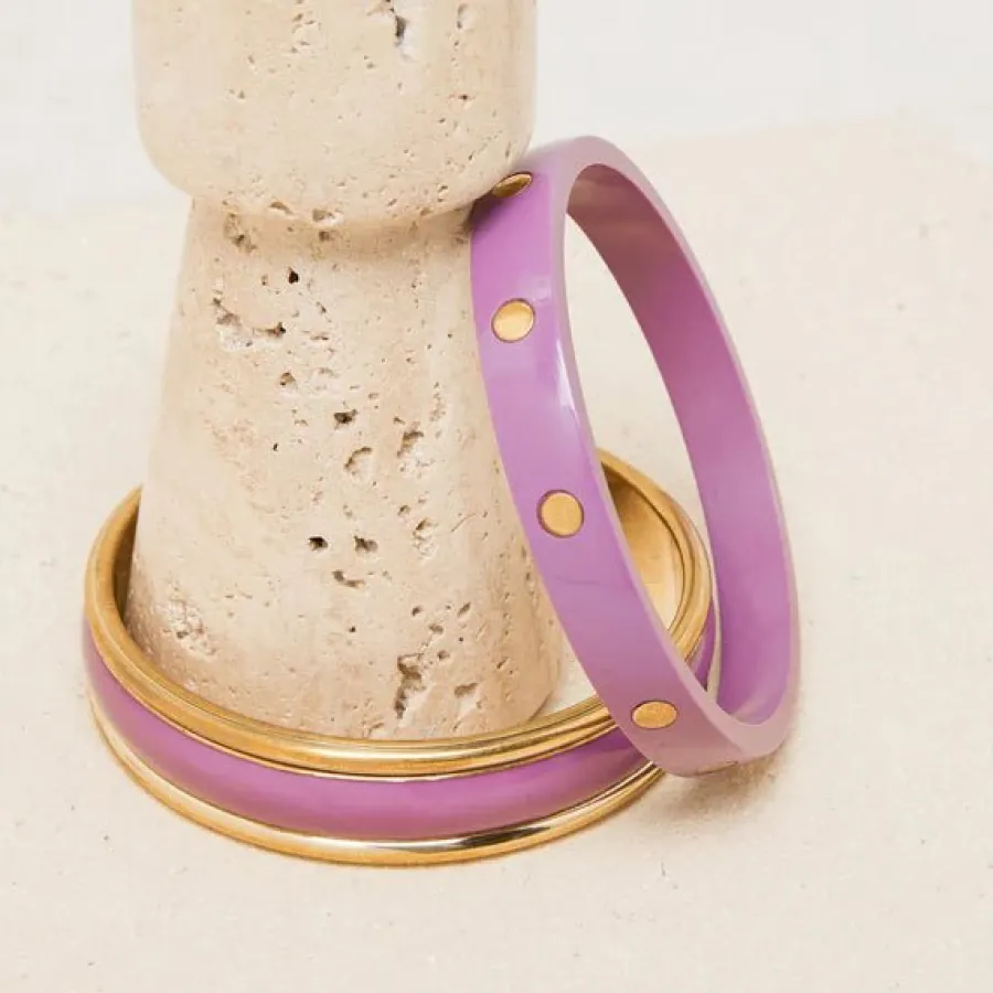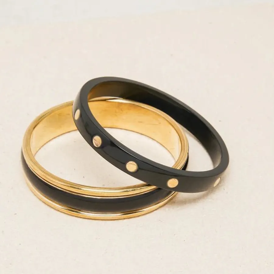 Set de 2 joncs fins en acétate et laiton doré.