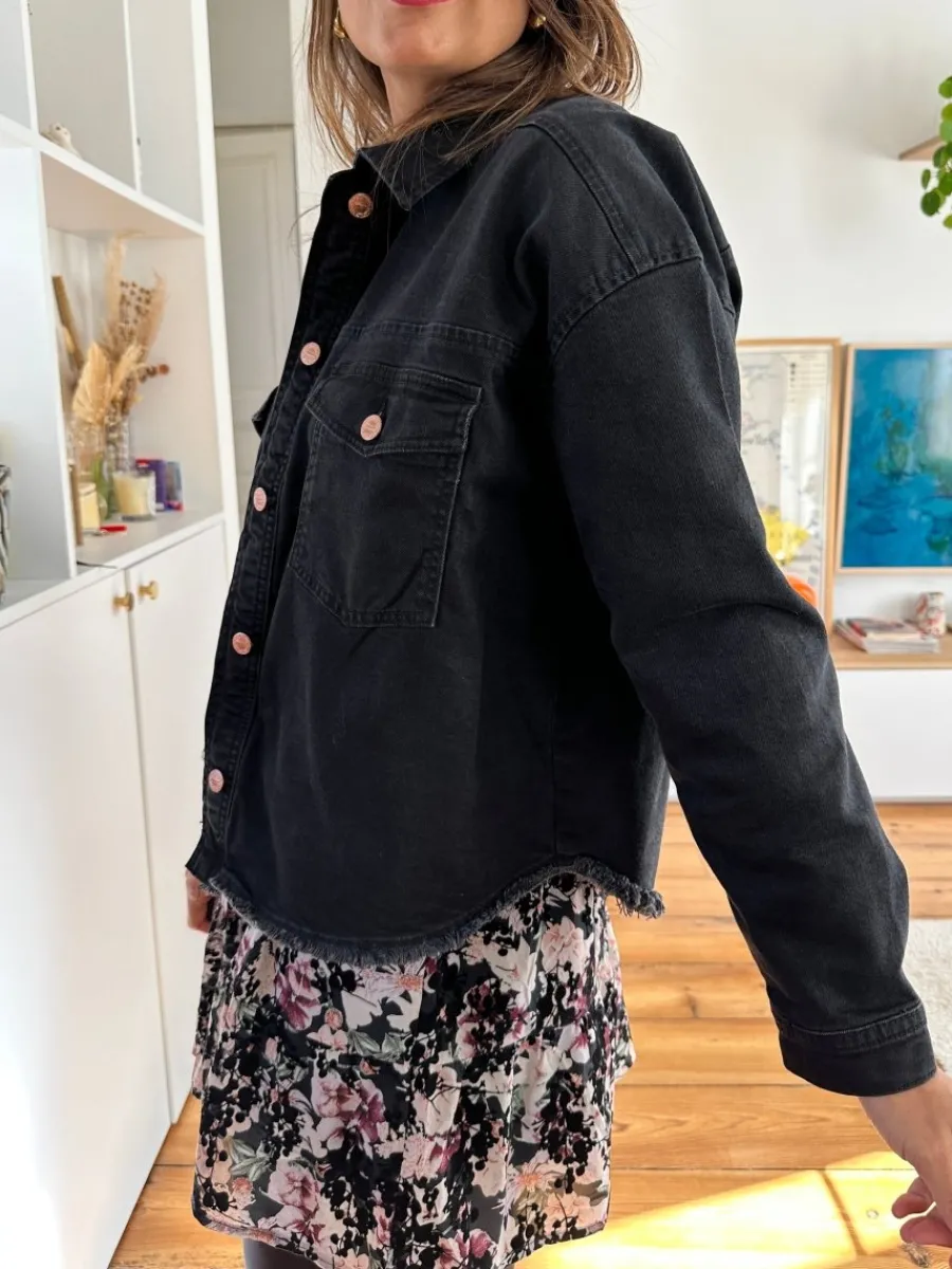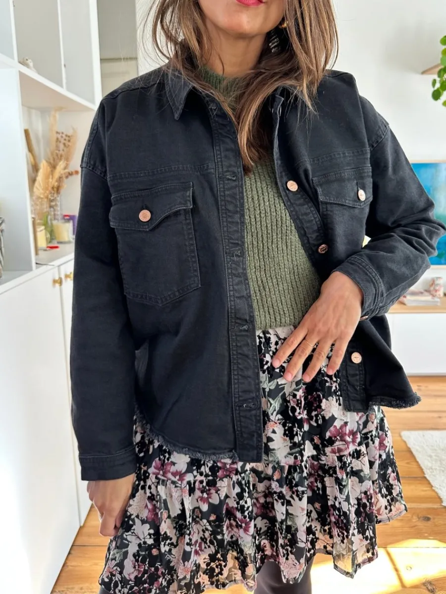 - Veste style sur chemise en jean noir
