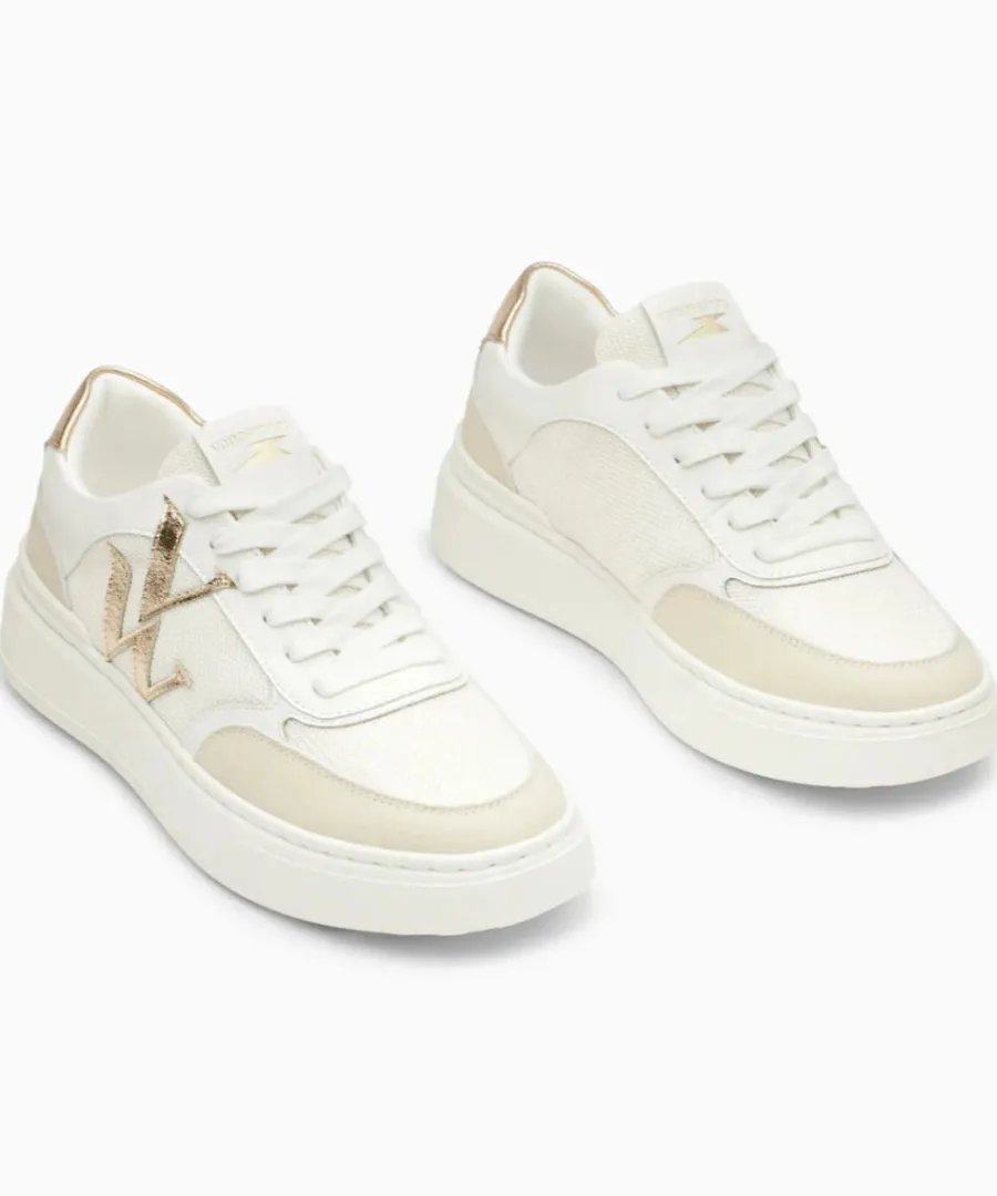 – Contrefort et empiècement avant en suédine effet daim fendu beige clair