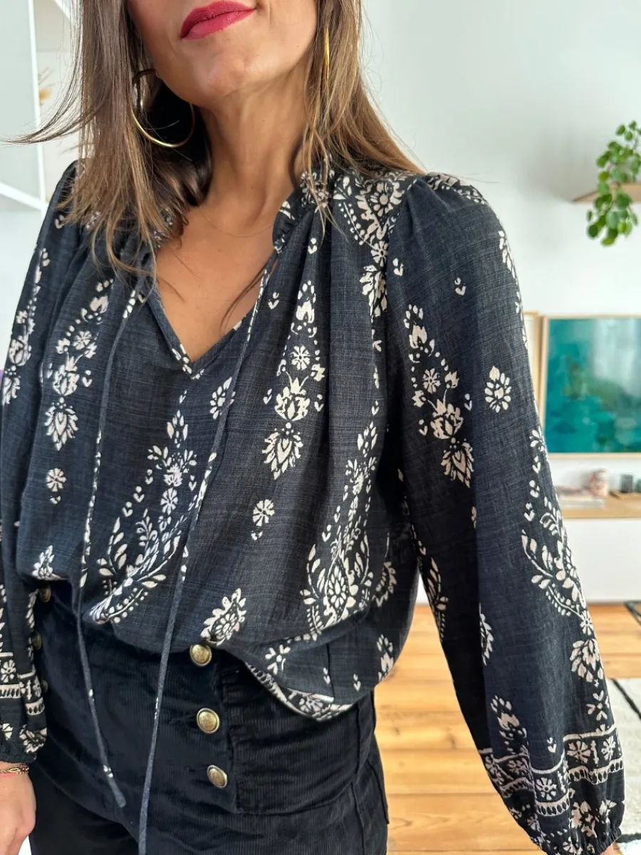 - Blouse anthracite avec motifs écrus