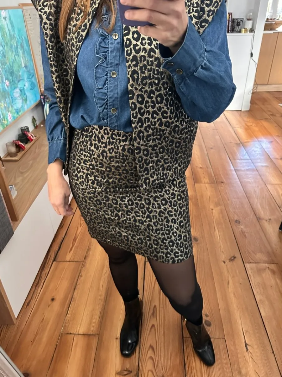 - Mini jupe trapèze léopard en jacquard